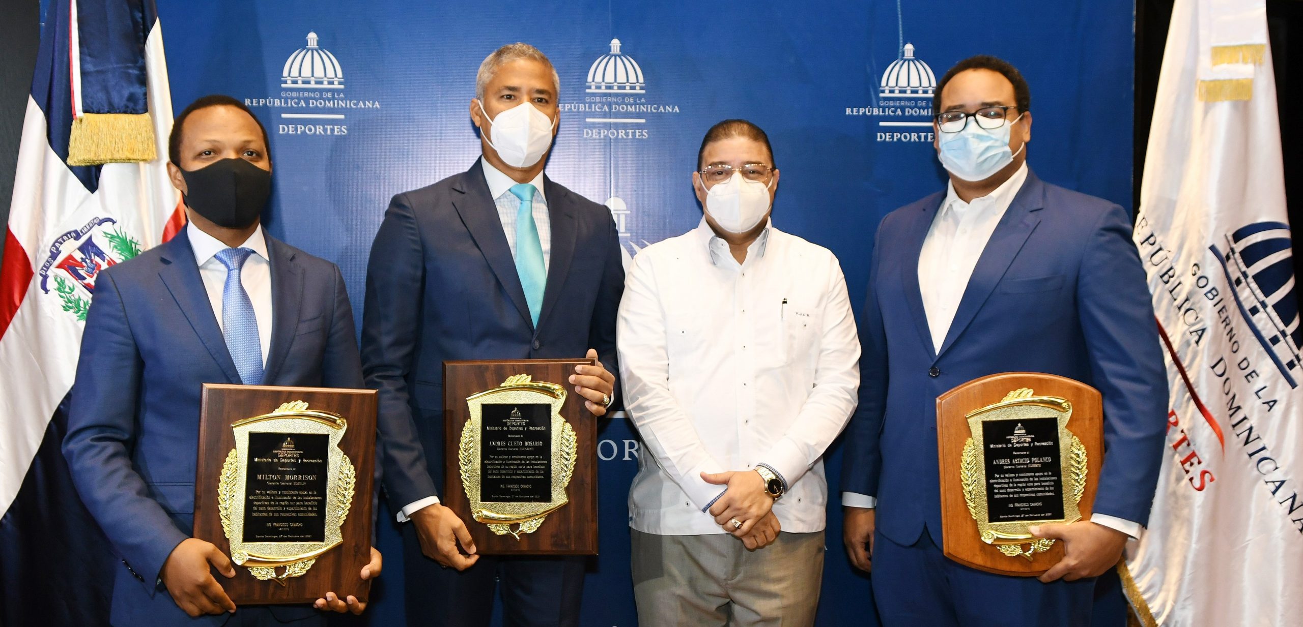 SANTO DOMINGO, RD.- El ministro de Deportes y Recreación, Francisco Camacho, tributó sendos homenajes a los administradores de las tres empresas distribuidoras de electricidad, como reconocimiento por la iluminación de cientos de instalaciones deportivas en todo el territorio nacional en lo que va de gobierno del presidente Luis Abinader.