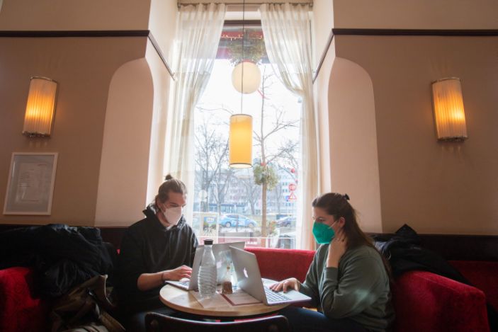 Ante esta situación, en la capital, Viena, algunas cafeterías han abierto sus puertas convertidas en bibliotecas para estudiantes.